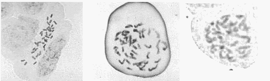(中,2n=54)および抵抗性系統の大系-24(右,2n=36)の染色体.